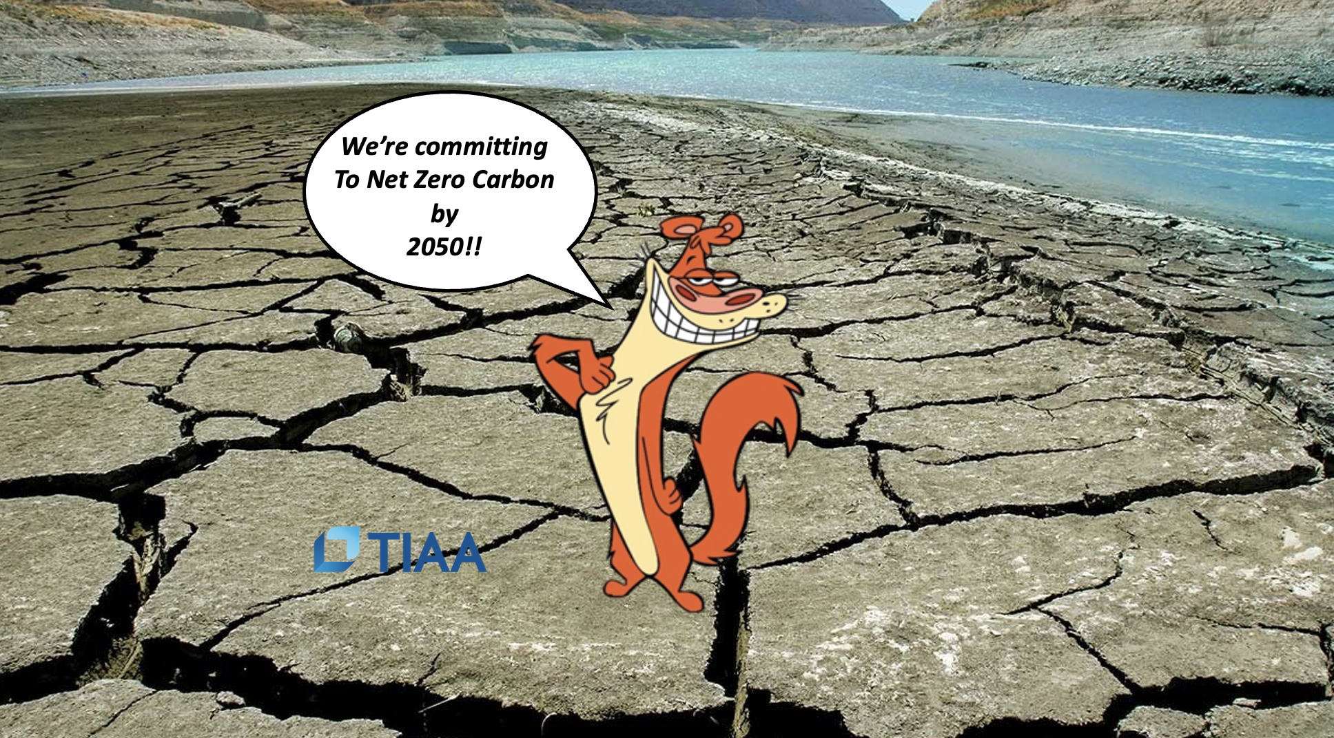 But there’s bad news too. There’s a lot of public relations rhetoric here and not a lot of substance. TIAA is not being transparent about its carbon exposure, and it’s not offering any details about how exactly the company plans to reduce its fossil fuel investments. For example, the report leaves out most of the company’s assets, focusing only on the General Account and Real Estate, which amount to about a quarter of its $1.3 trillion portfolio. What is happening with the other 75% of its assets?